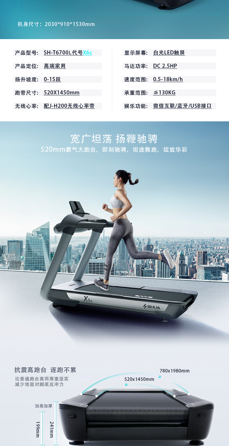 舒華跑步機家用款X6C商用減震健身房專用靜音大型器材SH-T6700L